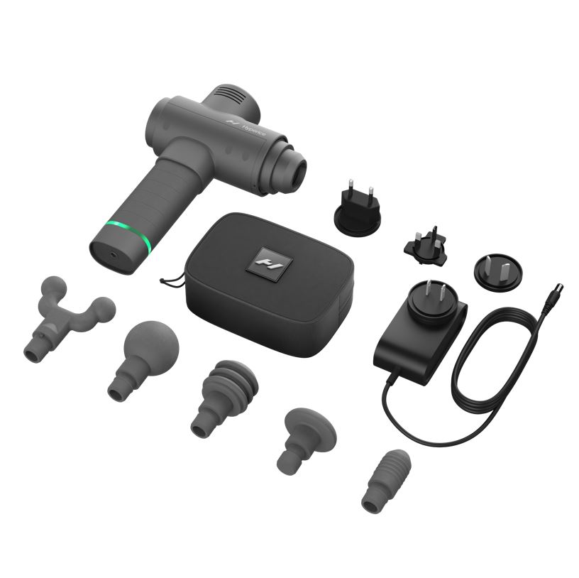 - Lieferumfang: Hyperice® Hypervolt 2 Pro, 24 V-Ladekabel, Aufbewahrungstasche für Aufsätze, Aufsatz Gabel, Aufsatz Ball, Aufsatz Dämpfer, Aufsatz Flachkopf, Aufsatz Bullet, Bedienungsanleitung