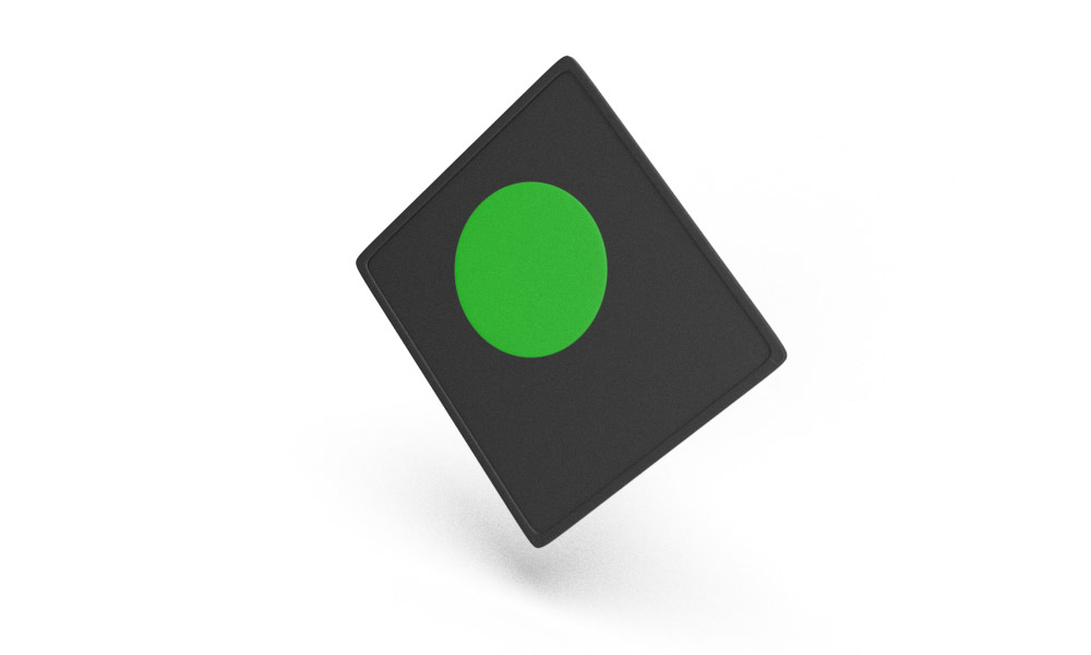 Ein Vita Chip. Er ist schwarz mit einem grünen Punkt.