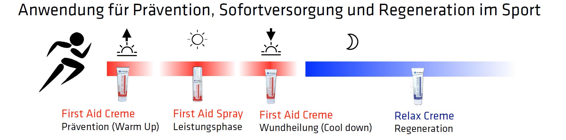 Verwenden Sie unsere K-Active First Aid Creme und das K-Active First Aid Spray vor und während der Belastung, um Ihren Körper mit den passenden Spurenelementen zu versorgen, um an Ihr optimales Leistungsniveau heranzukommen.