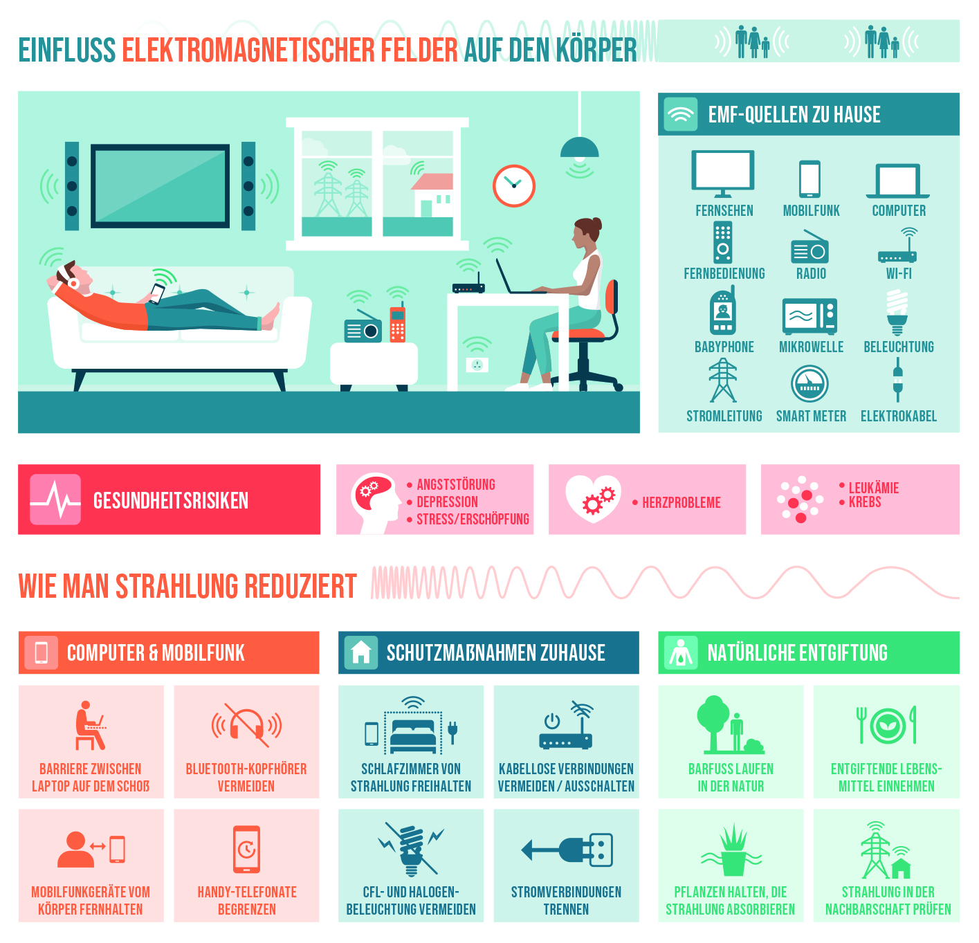 In unserer modernen und hochtechnisierten Welt gibt es beinahe keine strahlungsfreien Räume mehr. Elektromagnetische Strahlung durchdringt problemlos Häuserwände und wird selbst dort von WLAN und Bluetooth genährt.