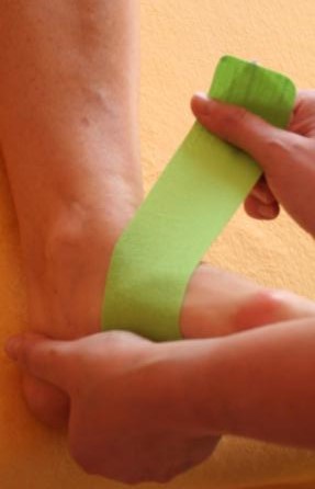 Hat der Therapeut nach einer ganzheitlichen Untersuchung die Ursachen der Problematik determiniert, kann er mit der Behandlung beginnen. Ein Teil der Therapiekette kann dabei aus einer kinesiologischen Tape-Anlage bestehen.