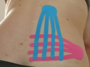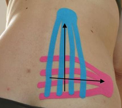Die lokale Tape-AnlageZwei Fächer, die sich im Bereich des Iliosakralgelenkes kreuzen, haben sich als Standardanlage bewährt. Die betroffene Seite muss allerdings zuerst bestimmt werden, bevor das Tape angelegt werden kann.