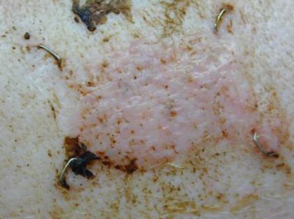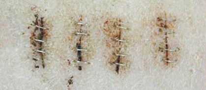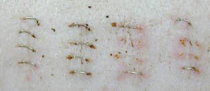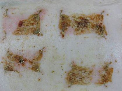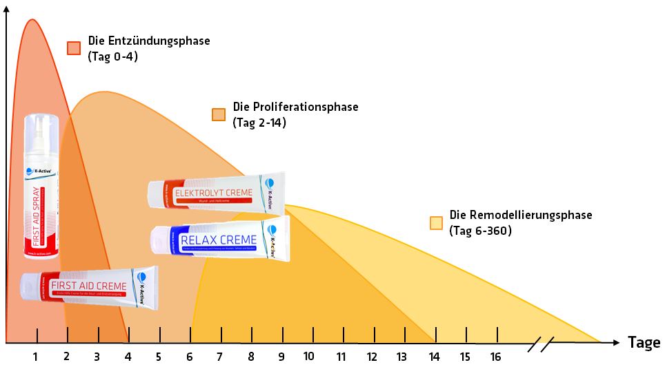 Um die Wunde herum kann zur Unterstützung der Heilung in den ersten 4 Tagen die K-Active® First Aid Creme und ab dem 5 Tag die K-Active® Elektrolyt Creme angewandt werden.