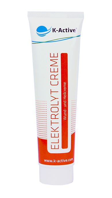 Die K-Active® Elektrolyt Creme ist eine Wund- und Heilsalbe und unterscheidet sich von der K-Active® First Aid Creme durch einen höheren PH-Wert der Grundsubstanz sowie einen optimierten Fettanteil für ein spürbar intensives Pflegeerlebnis.