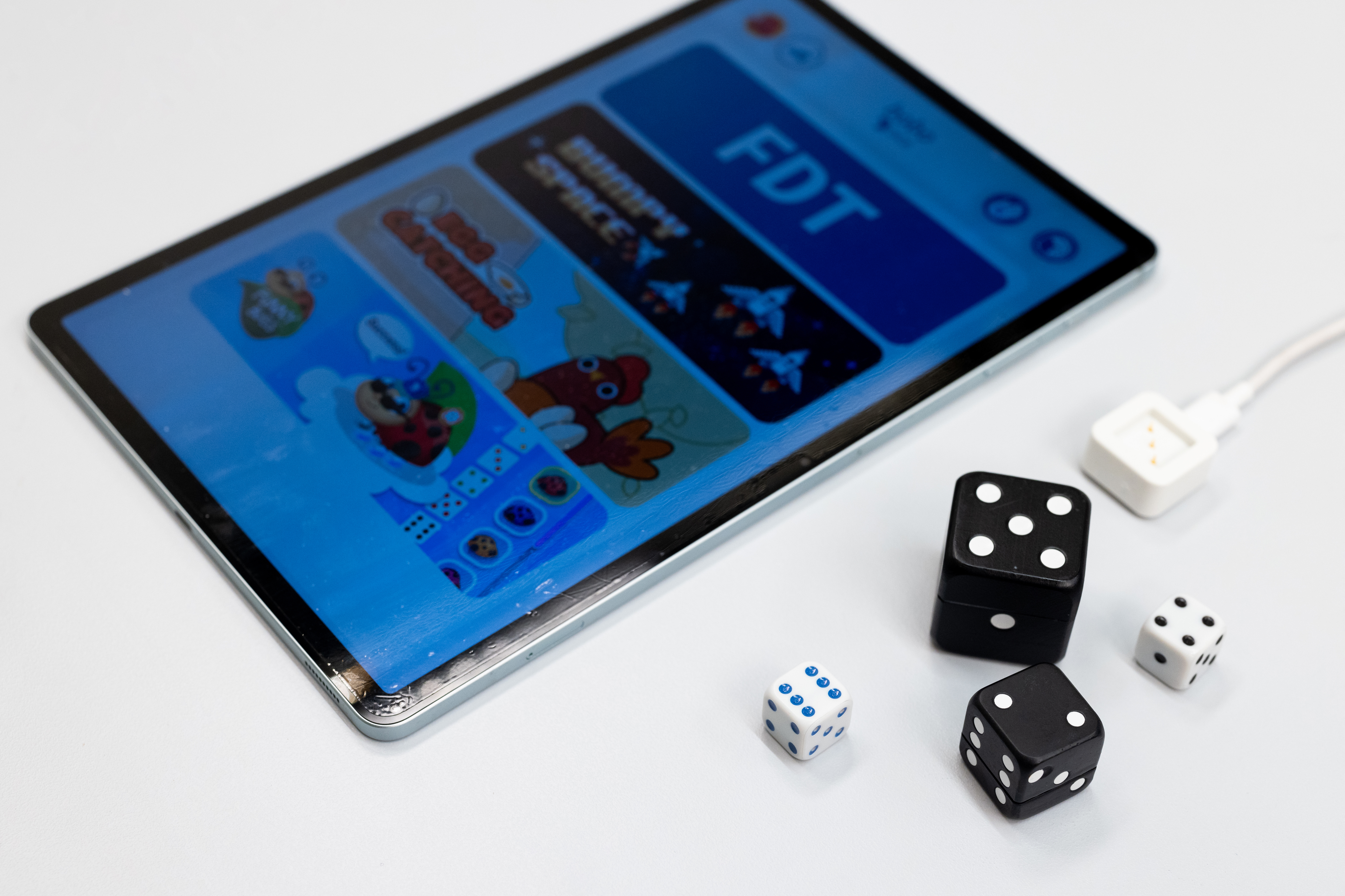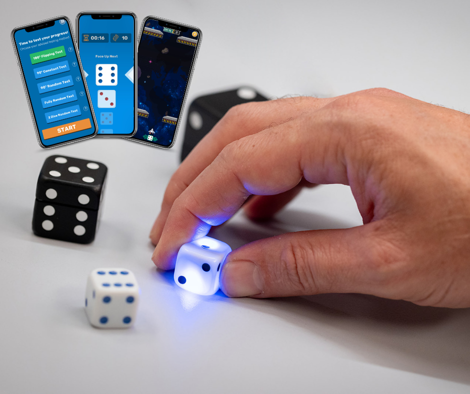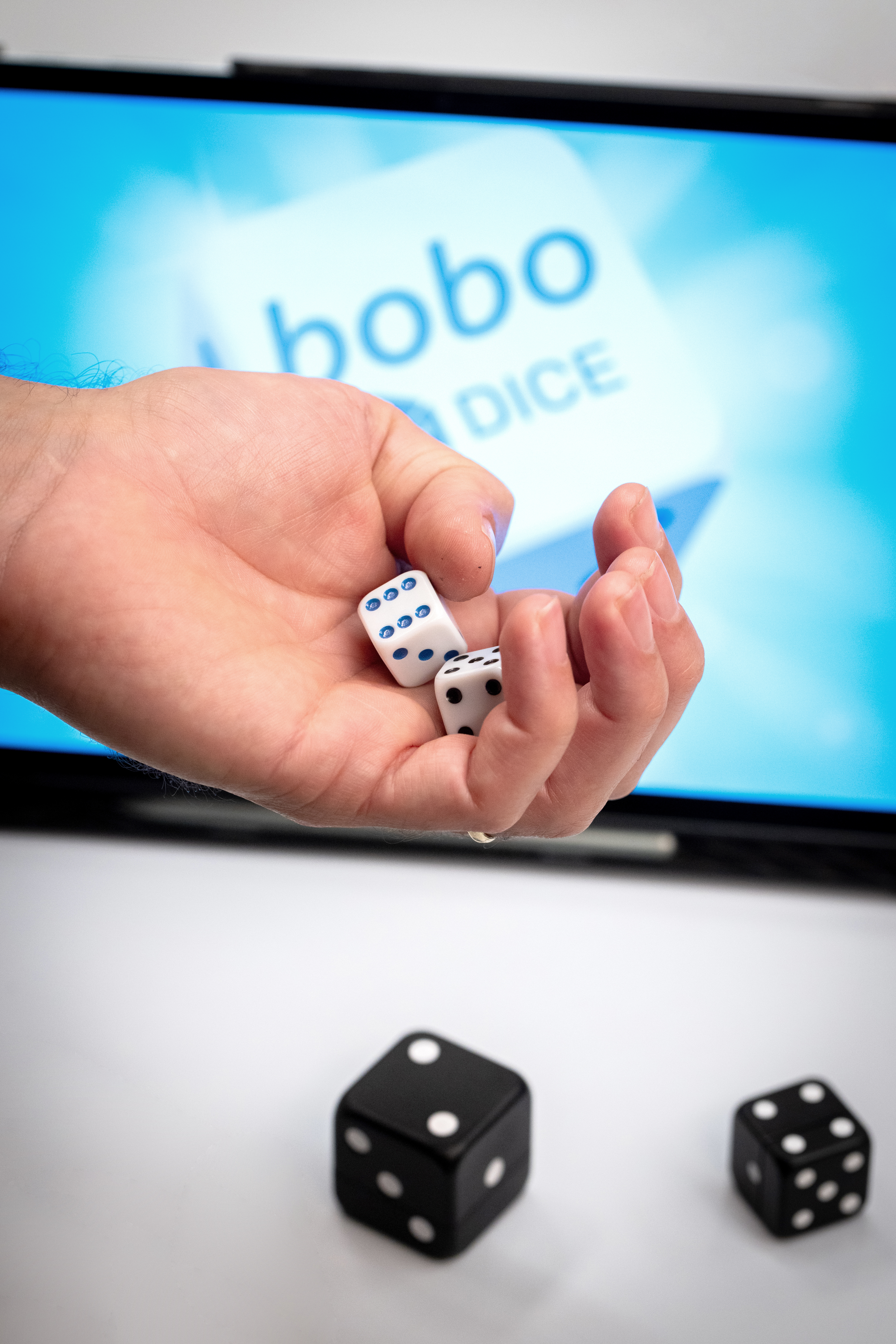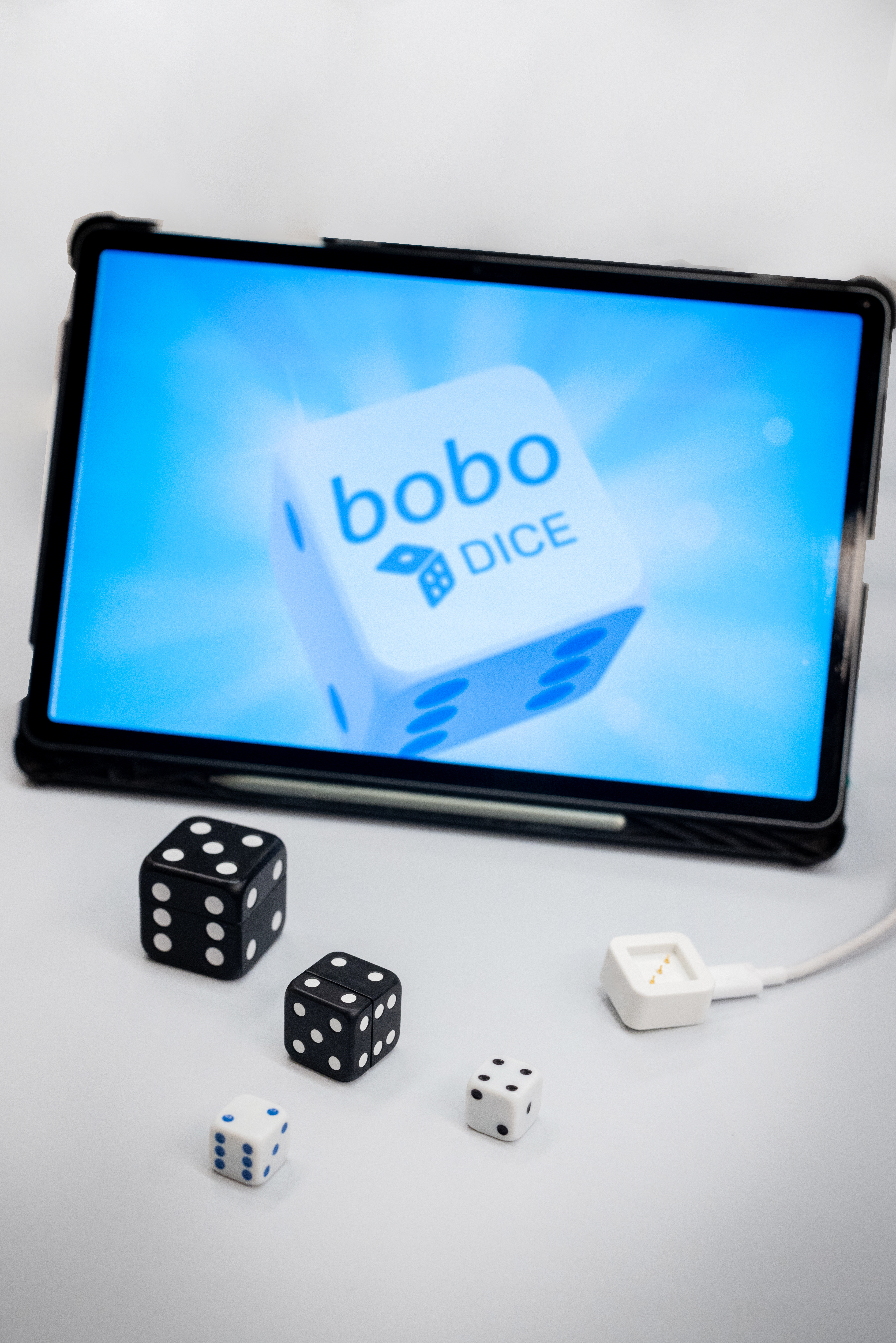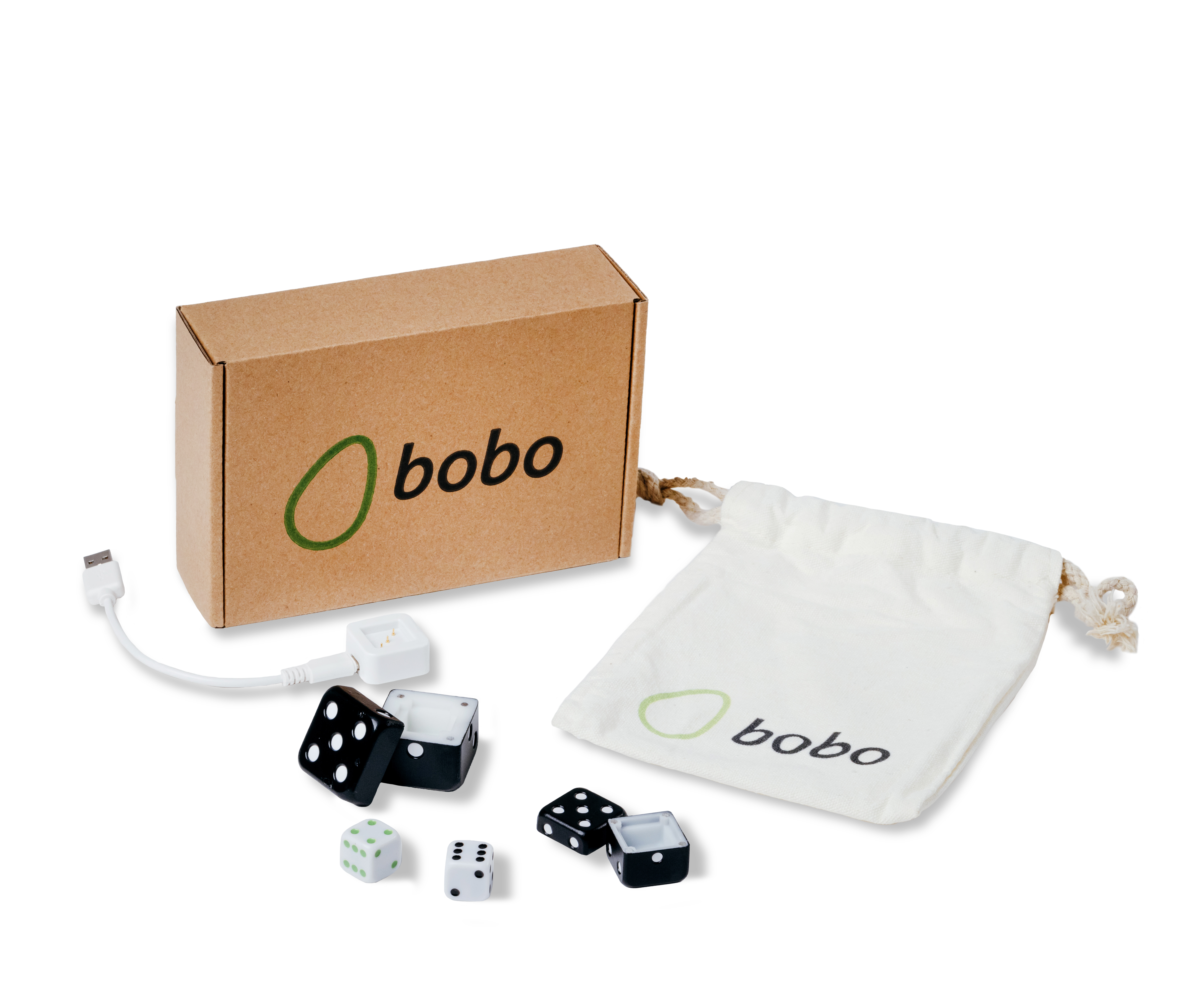 Der BoBo® Dice ist ein smarter Würfel, der mit Bewegungssensoren ausgestattet ist und über Bluetooth mit der BoBo® App verbunden werden kann.
