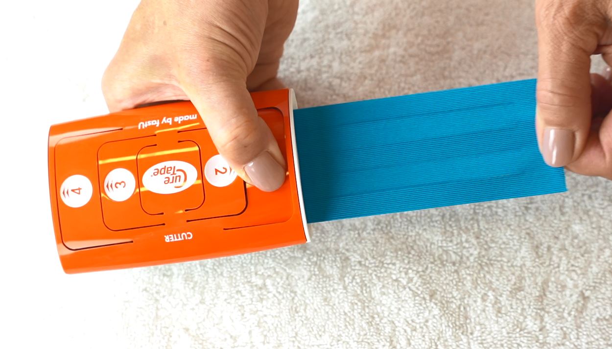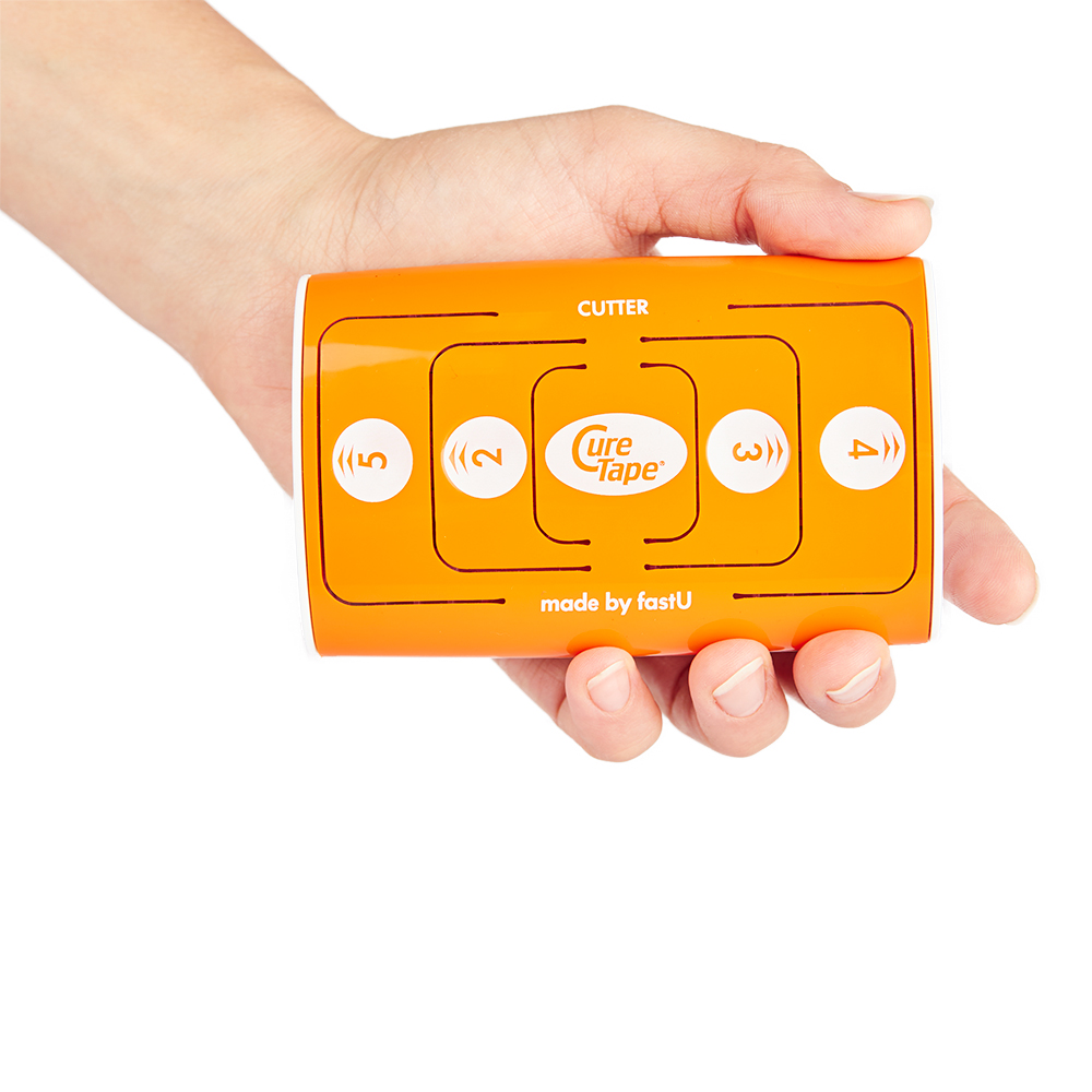 Mit dem CureTape® Cutter schneiden Sie aus einer 5 cm breiten Rolle mühelos 2, 3, 4 oder 5 gleich breite Tape-Streifen – in nur wenigen Sekunden.