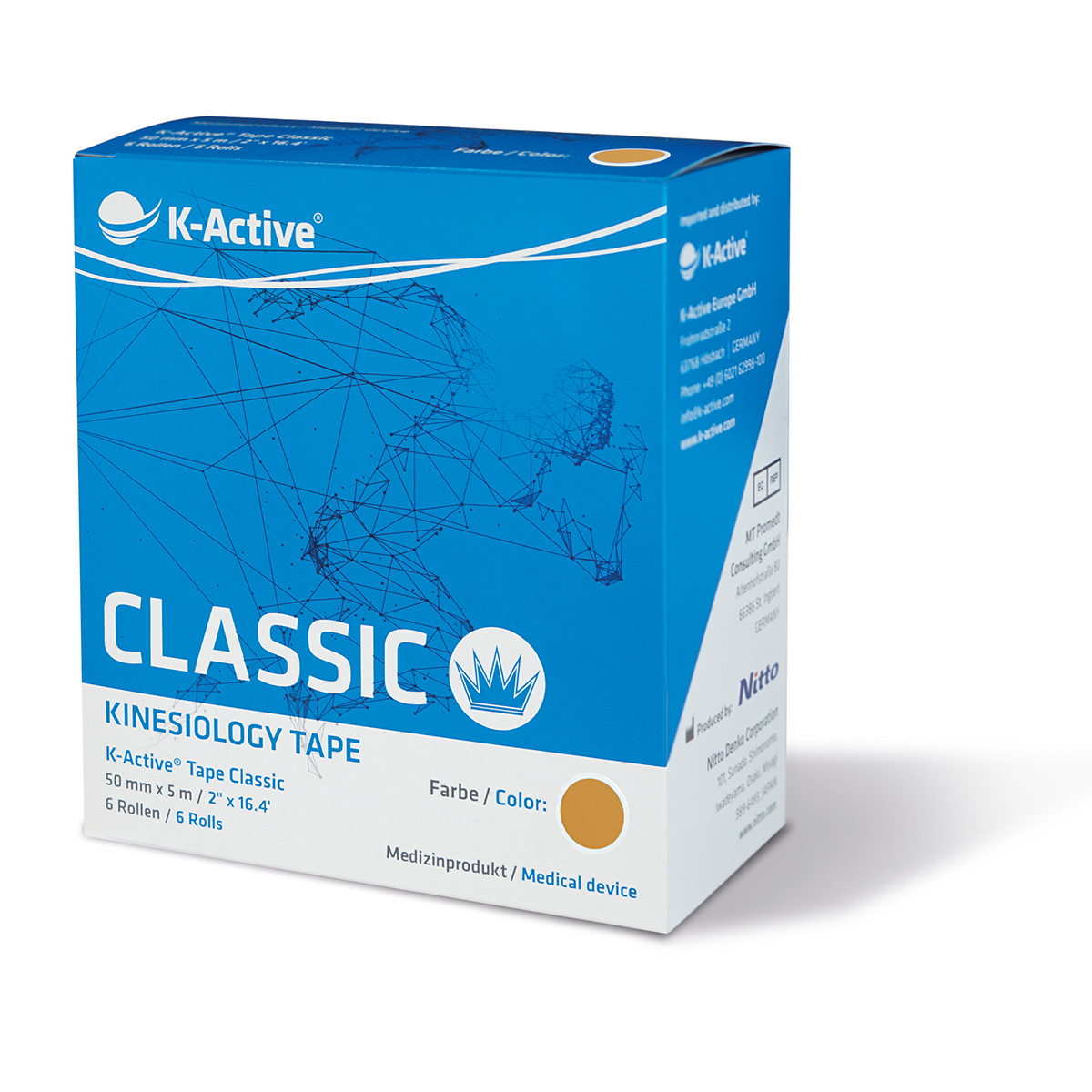 K-Active® Tape Classic - die 17 Meter-Rolle Unser Allrounder Der Ursprung aller Kinesiologischen Tapes! ... sei' wählerisch für dich, deine Patienten und Sportler und nutze das beliebteste aller K-Active Tapes! Was du erwarten kannst Seit seiner Geburtsstunde vor über 30 Jahren hat Nitto Denko die Eigenschaften und die Herstellung des K-Active Tape Classic kontinuierlich optimiert, um dir genau das zu bieten, was du von einem Original erwartest: hypoallergenen Acrylkleber beste Hautverträglichkeit atmungsaktives, elastisches Baumwollgewebe Schadstofffreiheit zuverlässigen langen Halt hinterlässt keine Rückstände faires Preis-Leistungs-Verhältnis jahrelang angewandt von führenden Ärzten und Therapeuten in den Bereichen Sport und Medizin Für deine Sicherheit Diese langjährige Produktionserfahrung bedeutet parallel auch über 30 Jahre Therapieerfahrung mit den original Nitto Denko Tapes. Diese zusammen mit Bachelorarbeiten sowie Studien garantieren höchste Sicherheit für die Anwender in aller Welt, was Ihnen kein anderes Kinesiologisches Tapeprodukt auf dem weltweiten Markt bieten kann!Vertraue auch du die Gesundheit deiner Patienten und Sportler dem beliebtesten K-Active Tape an! Produktdetails: Material: Baumwollgewebe, Acrylkleber Maße je Rolle: 5 cm Breite x 17 m Länge Lieferumfang: 1 Rolle in einer praktischen Umverpackung mit Ausgabe-Schlitz