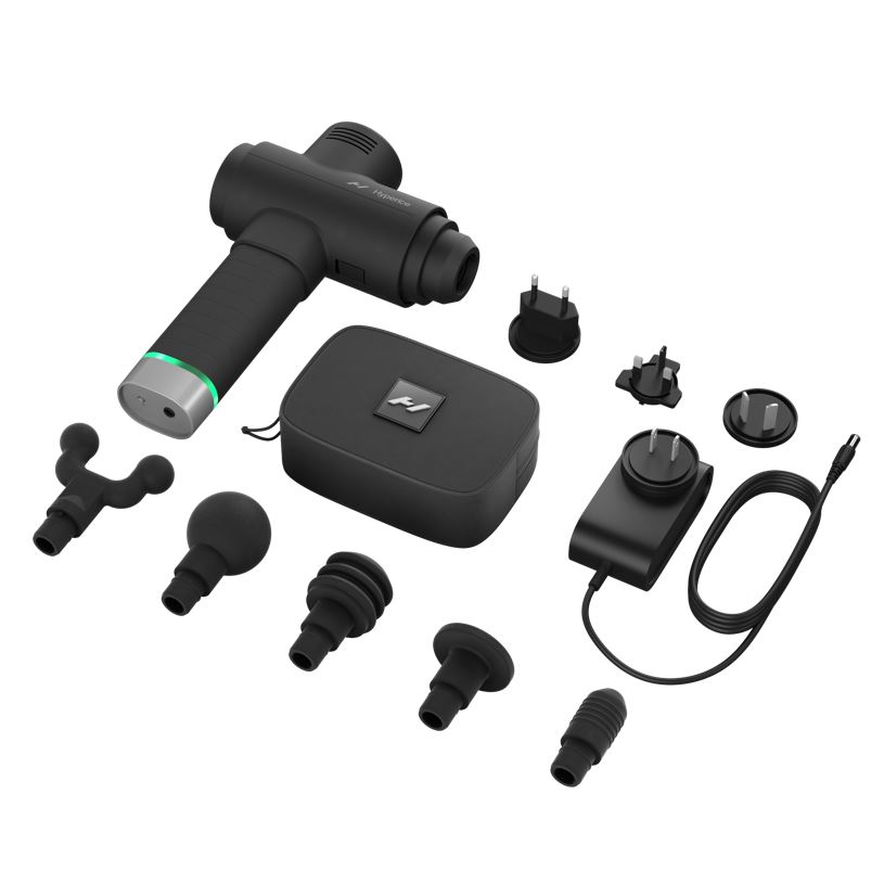 - Lieferumfang: Hyperice® Hypervolt 2 Pro, 24 V-Ladekabel, Aufbewahrungstasche für Aufsätze, Aufsatz Gabel, Aufsatz Ball, Aufsatz Dämpfer, Aufsatz Flachkopf, Aufsatz Bullet, Bedienungsanleitung