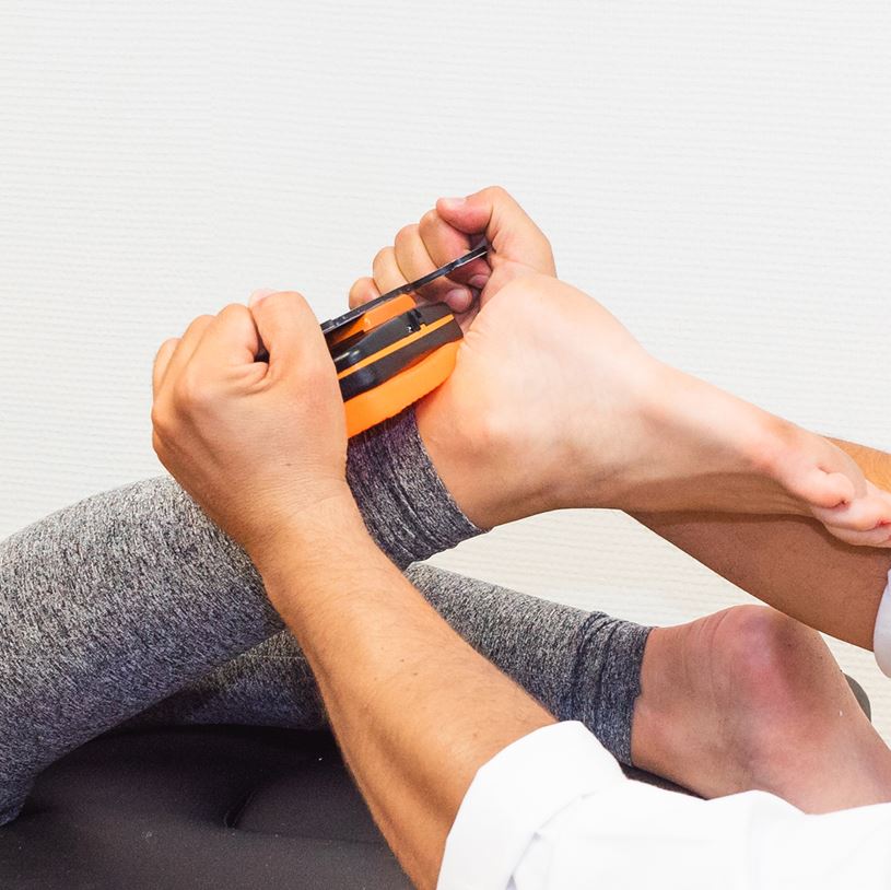 Der am Muscle Controller serienmäßig angebrachte Riemen zur Befestigung an der Hand ist abnehmbar und kann somit durch den Twin Handle ausgetauscht werden. Er eignet sich besonders für Maßnahmen, die einen stabilen und kontrollierten Zweihandgriff erfordern. Die Messung wird genauer und die Anwendung ist sehr komfortabel.