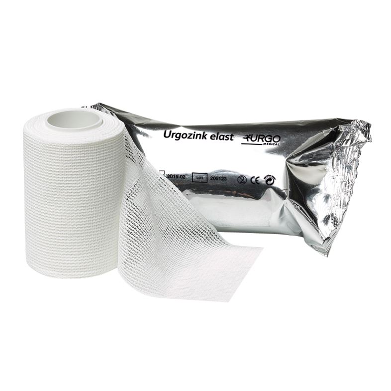 Urgozink elast ist die längs dehnbare Zinkleimbinde der Marke Urgo®. Sie ist leicht modellierbar und dadurch sehr einfach anzulegen, selbst an konischen Körperteilen oder an Gelenken.